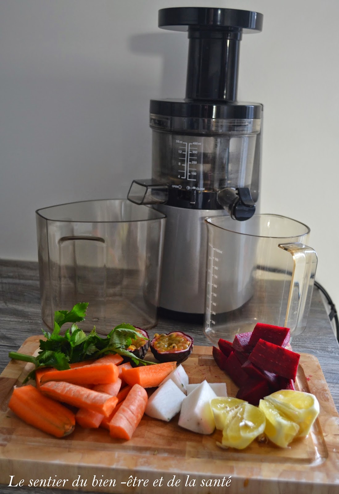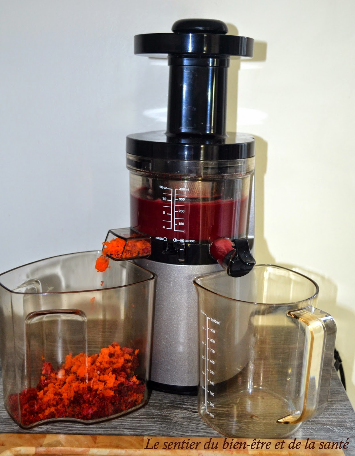 Convaincue depuis longtemps de tous les bienfaits des jus de légumes sur notre santé, j’ai pourtant mis du temps à me décider … j’ai longuement étudié la question: extracteurs horizontaux, verticaux, le nombre de tours par minute, le rendement en jus, la qualité et la texture du jus … et le prix entre 300 à 500 euros, il faut être sûr de son choix !